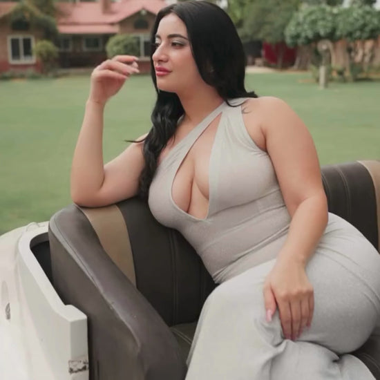 Look like a goddess in the Silver Starlight Gown with its one off shoulder & shoulder bodice slant slit. This dress features bodycon fit and ample fabric towards the bottom giving a dramatic effect with a long side trail. A must have for elegant nights, it comes in multiple sizes however dry clean only.